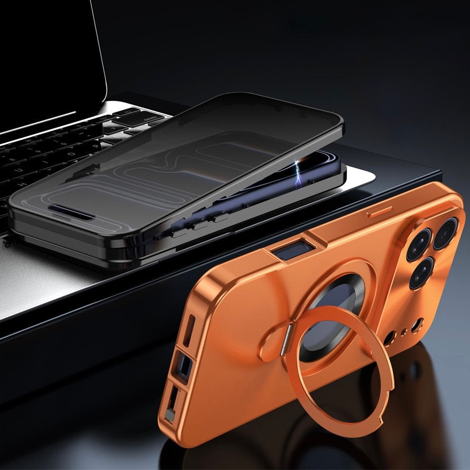 360° MagSafe/Magnet [SICHTSCHUTZ 9H-Glas] Aluminium Vollschutz Hülle/Case mit integriertem Ständer und Kameraabdeckung für iPhone 17 Pro, 17 Pro Max