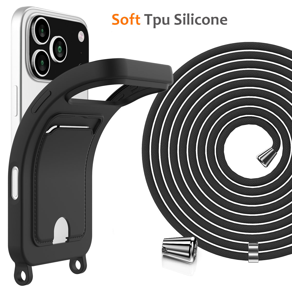 Kartenfach Silikon Hülle/Case zum Umhängen (inkl. Kordel) für iPhone 17 Pro, 17 Pro Max