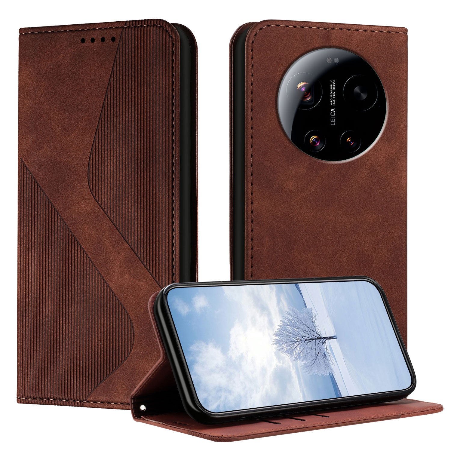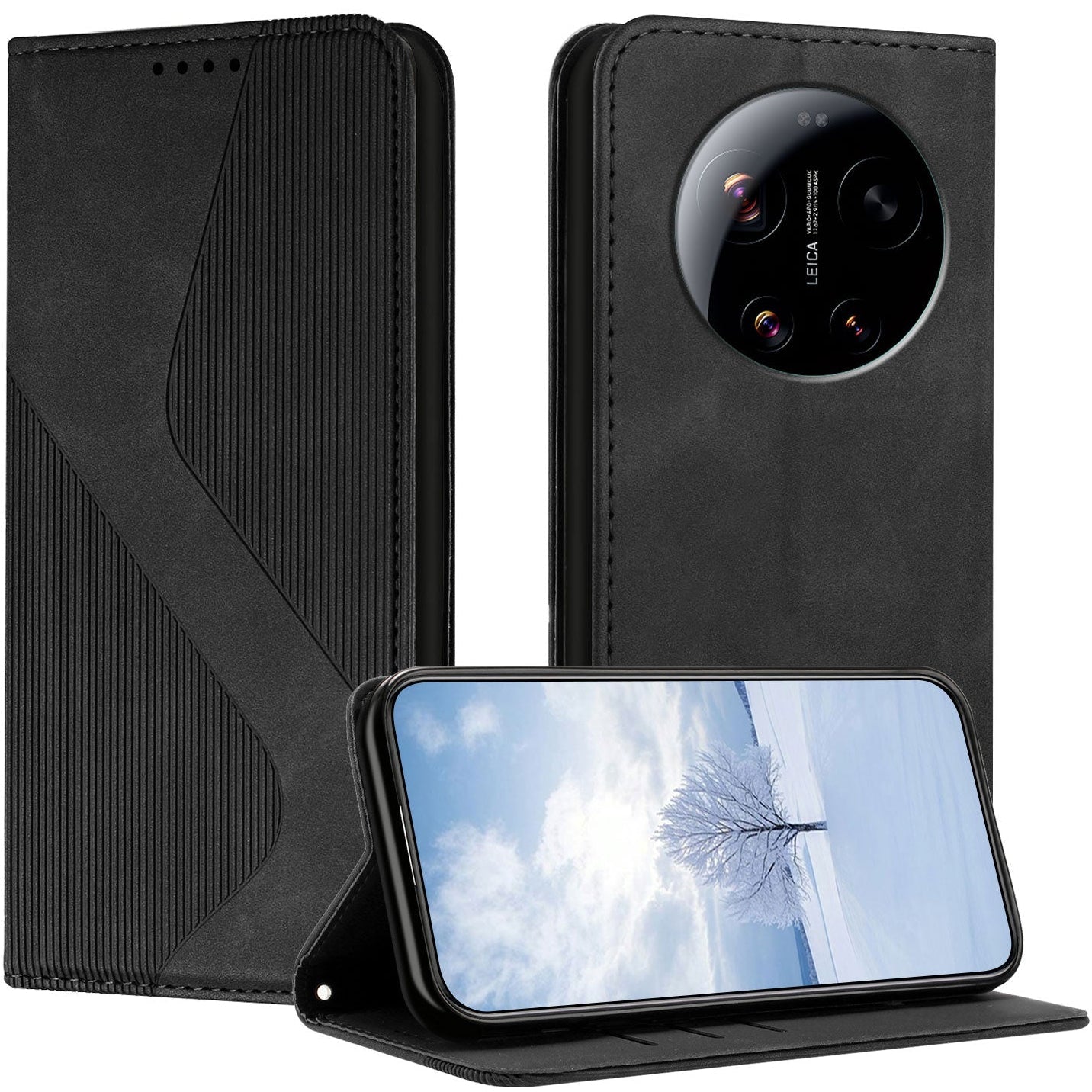 Wellen Kunstleder Klapp Hülle/Flip Case für Xiaomi 17 Ultra