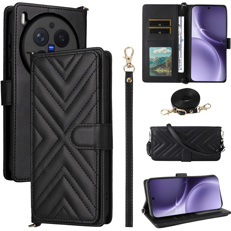 Karierte Kunstleder Brieftaschen Hülle/Case für Vivo X300, X300 Pro
