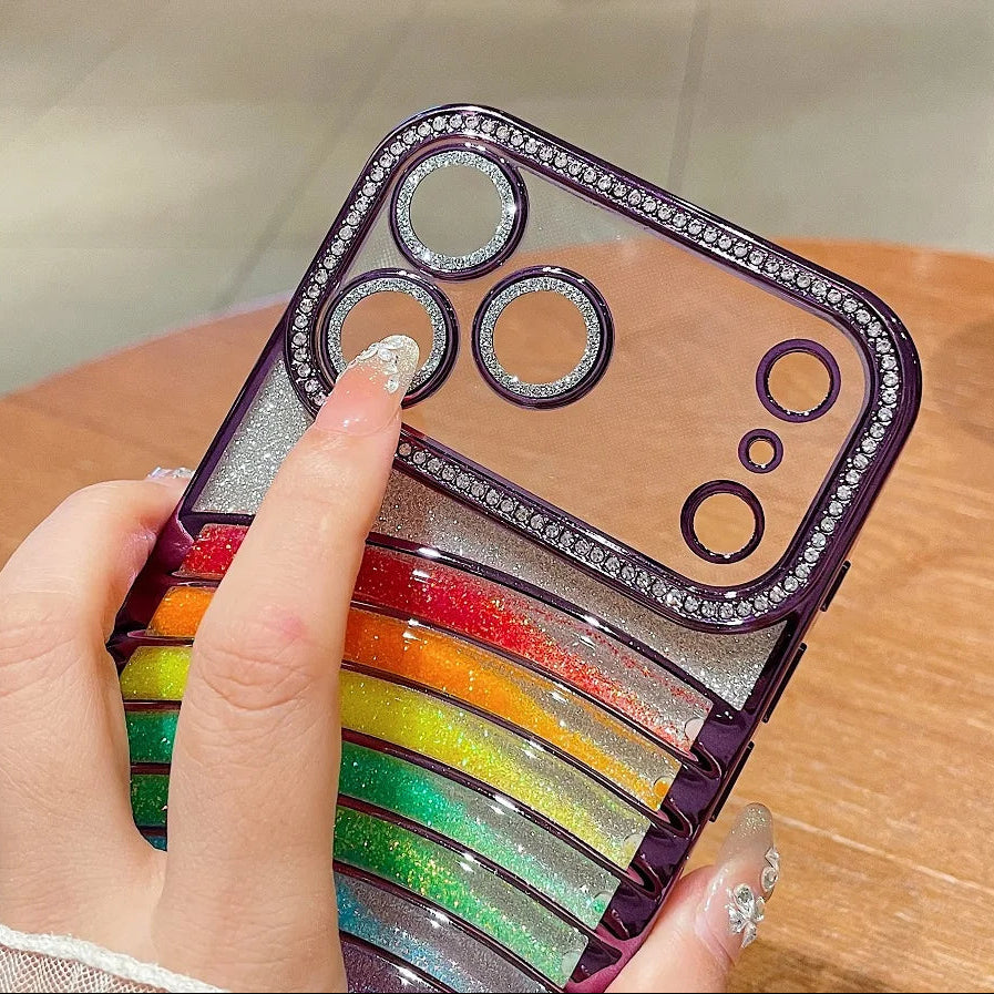 3D Glitzer/Diamant Regenbogen Silikon Hülle/Case für iPhone 17 Pro, 17 Pro Max