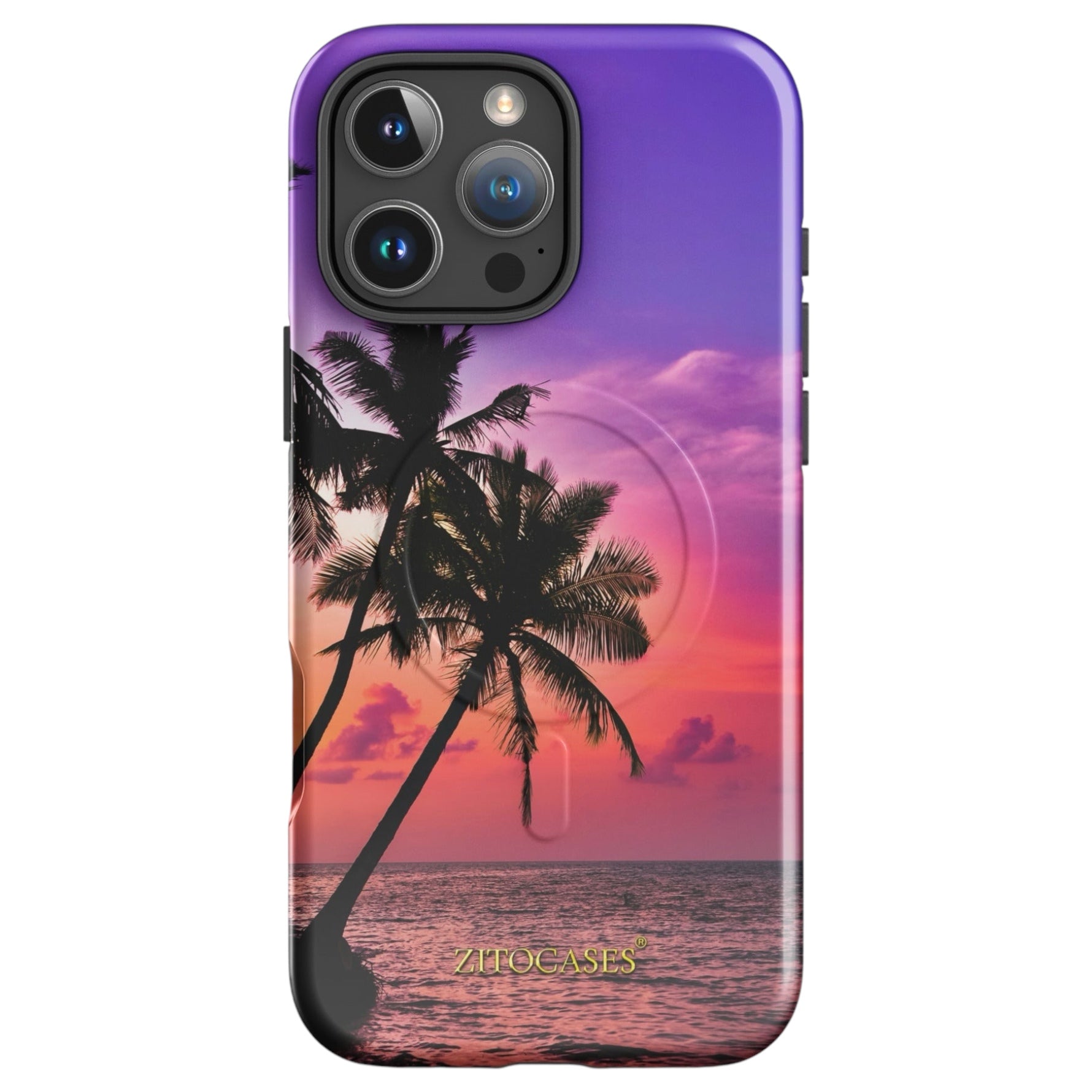 Dualschutz MagSafe/Magnet Palmen/Sonnenuntergang Design 2-in-1 Hybrid Hülle/Case für iPhone 16, 16 Plus, 16 Pro, 16 Pro Max, 15, 15 Plus, 15 Pro, 15 Pro Max, 14, 14 Plus, 14 Pro, 14 Pro Max | ZITOCASES®