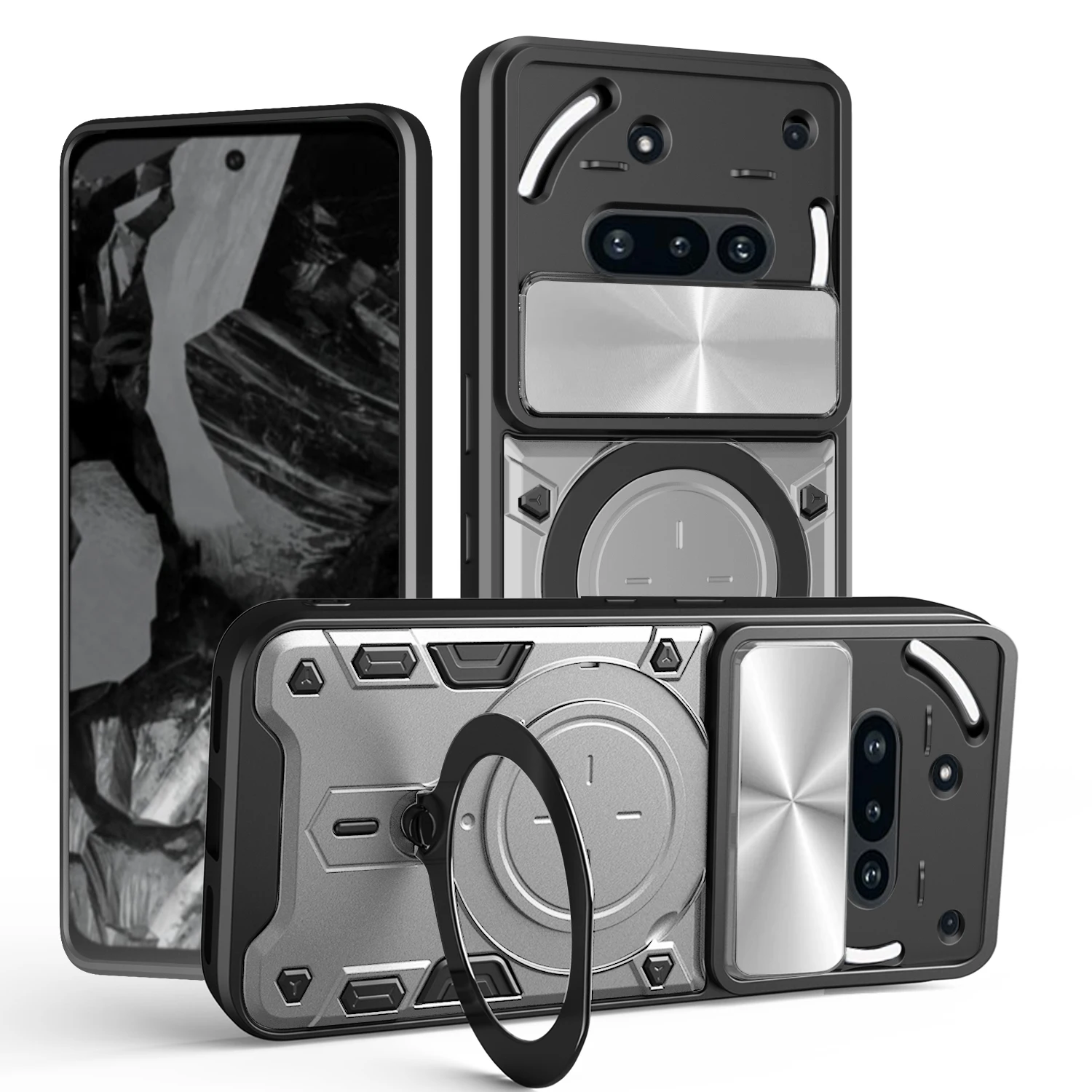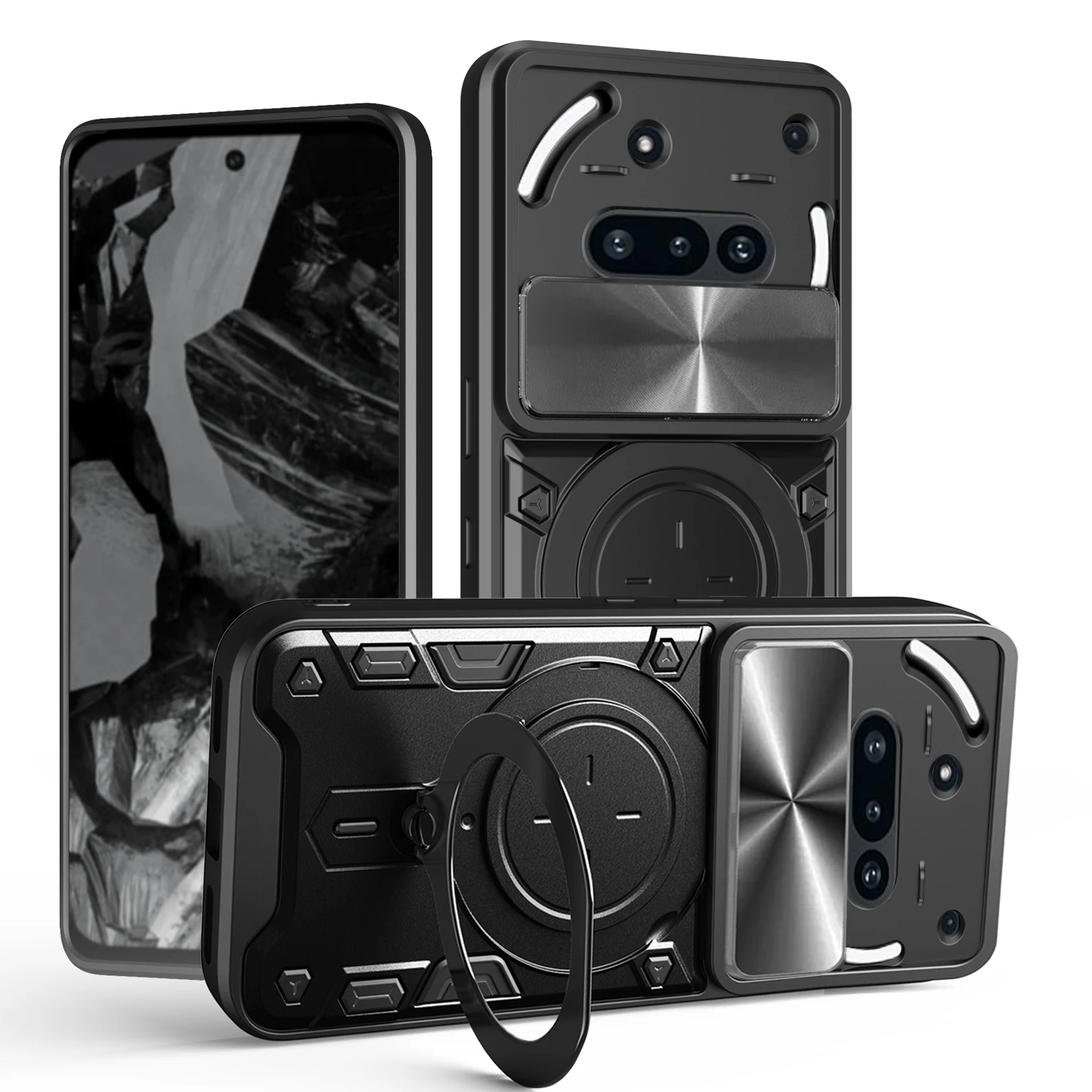 Outdoor MagSafe/Magnet Kamera Schutz Hülle/Case inkl. Ständer/Auflage für Nothing Phone (3), (3a), (3a) Pro, (2), (2a), (2a) Plus, (1), CMF Phone 1, CMF Phone 2 Pro