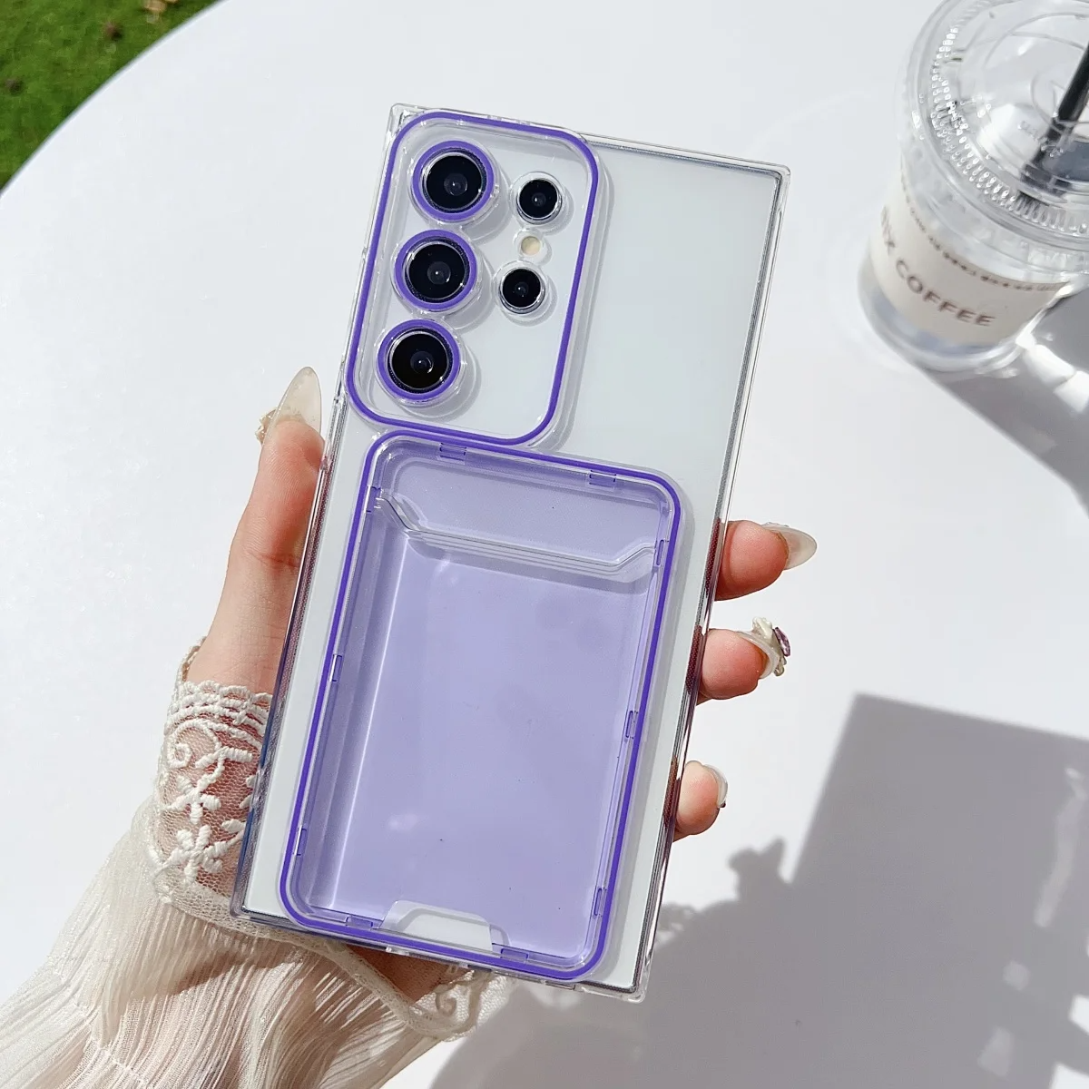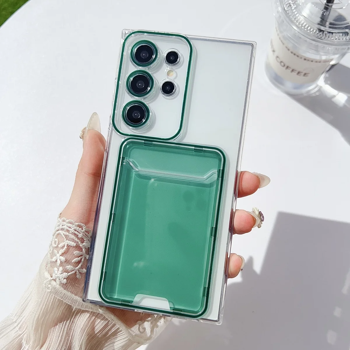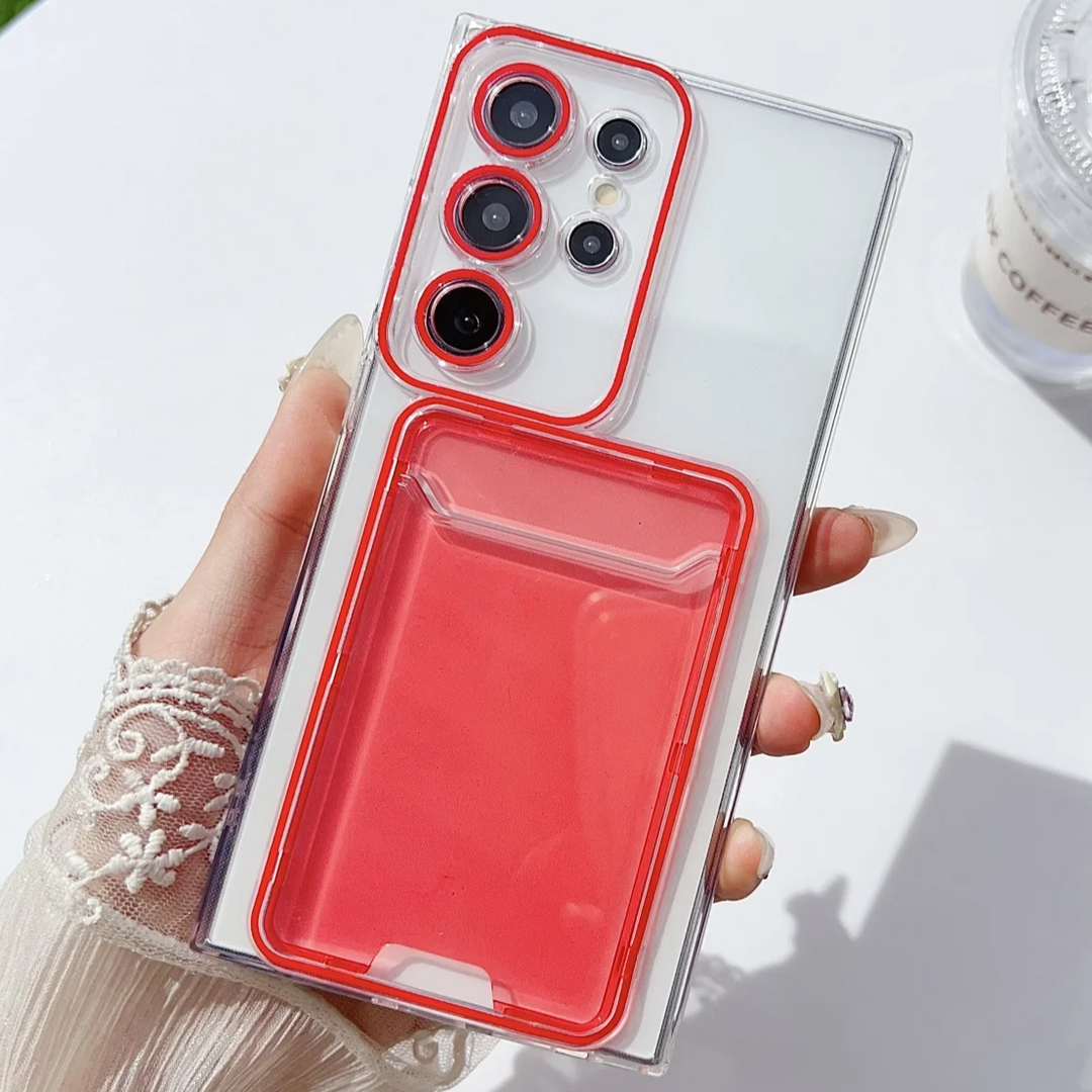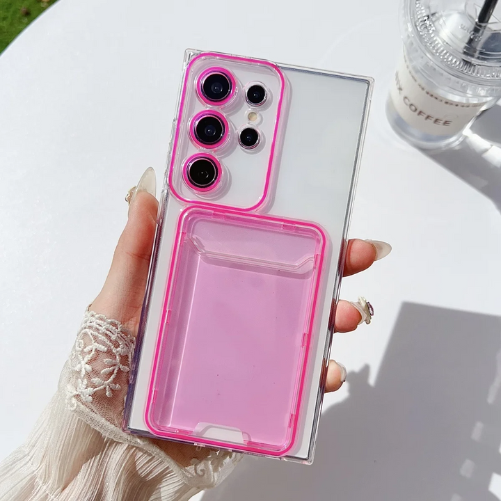 Transparente Neon Kartenfach/Wallet Hülle/Case für Samsung Galaxy S25, S25 Plus, S25 Ultra, S25 Edge, S25 FE, S24, S24 Plus, S24 Ultra, S24 FE,S23 FE, S23, S23 Plus, S23 Ultra, S22, S22 Plus, S22 Ultra, S21 FE, S21, Note 20