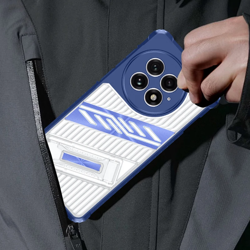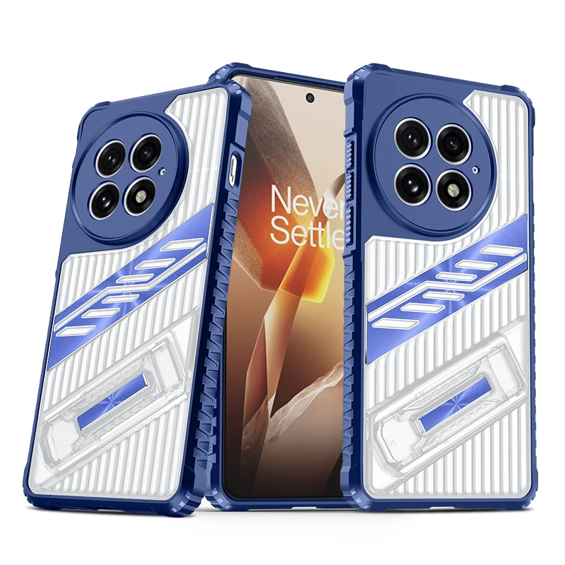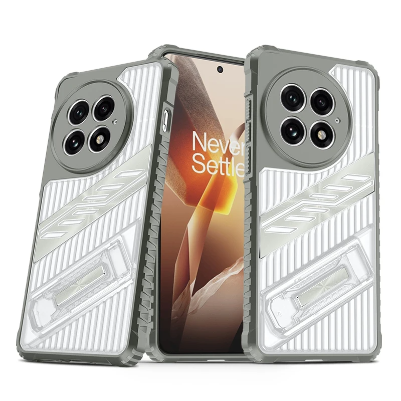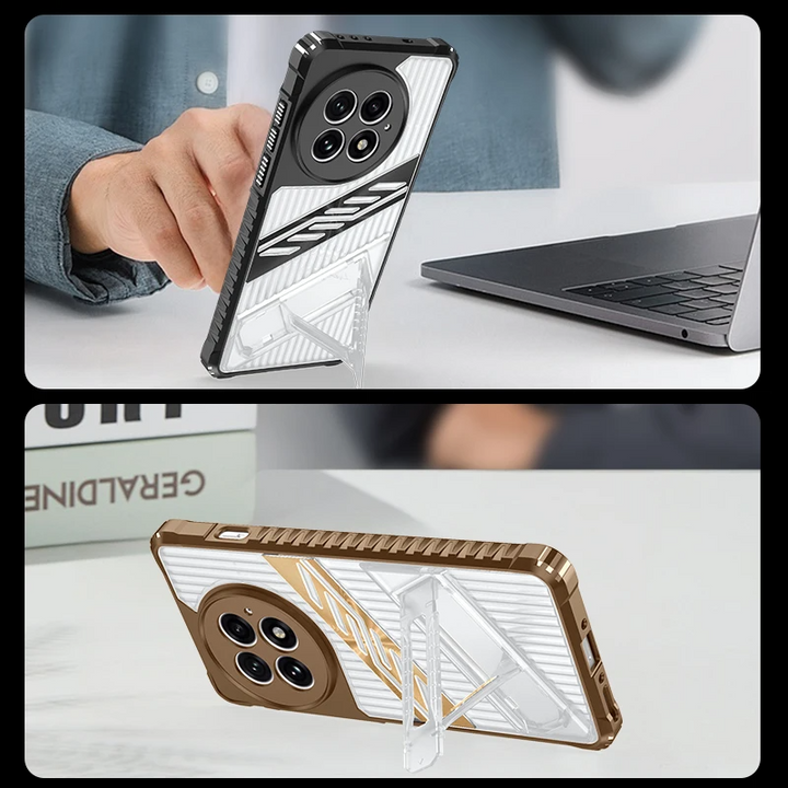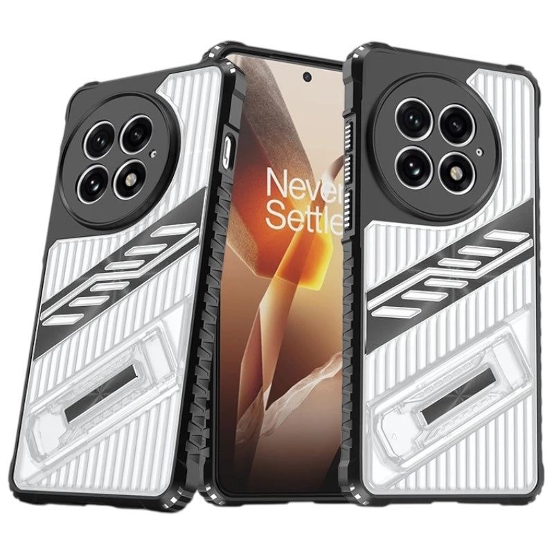 Gestreifte/Transparente AirBag Hülle/Case inkl. Ständer/Auflage für OnePlus 13R, 13, 12R, 12, 11, 10T, 10 Pro, 9, 9 Pro, 8, 8 Pro, 8T, Nord 4, 3, 2, CE