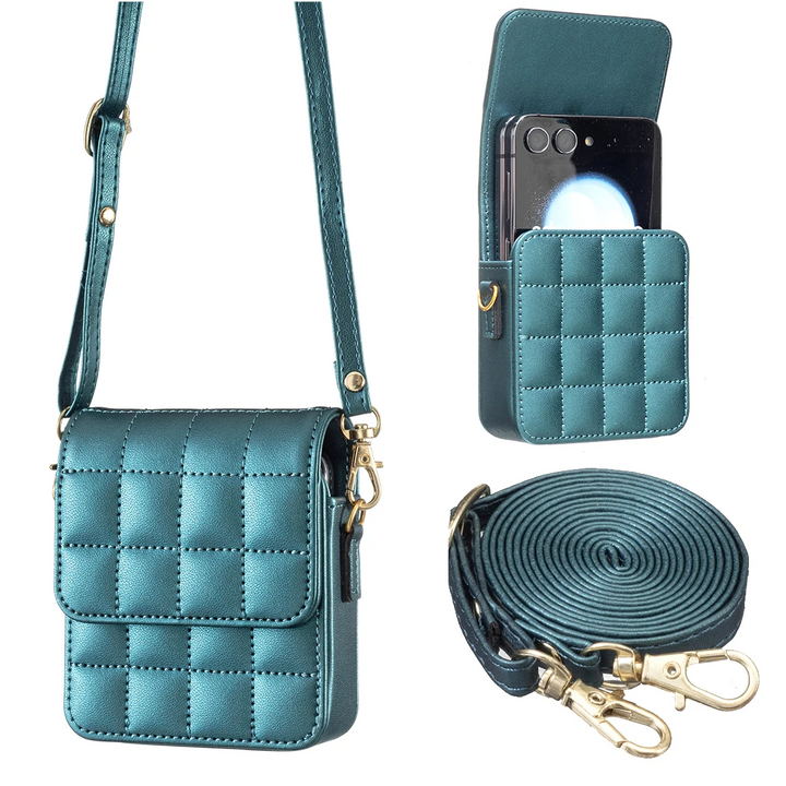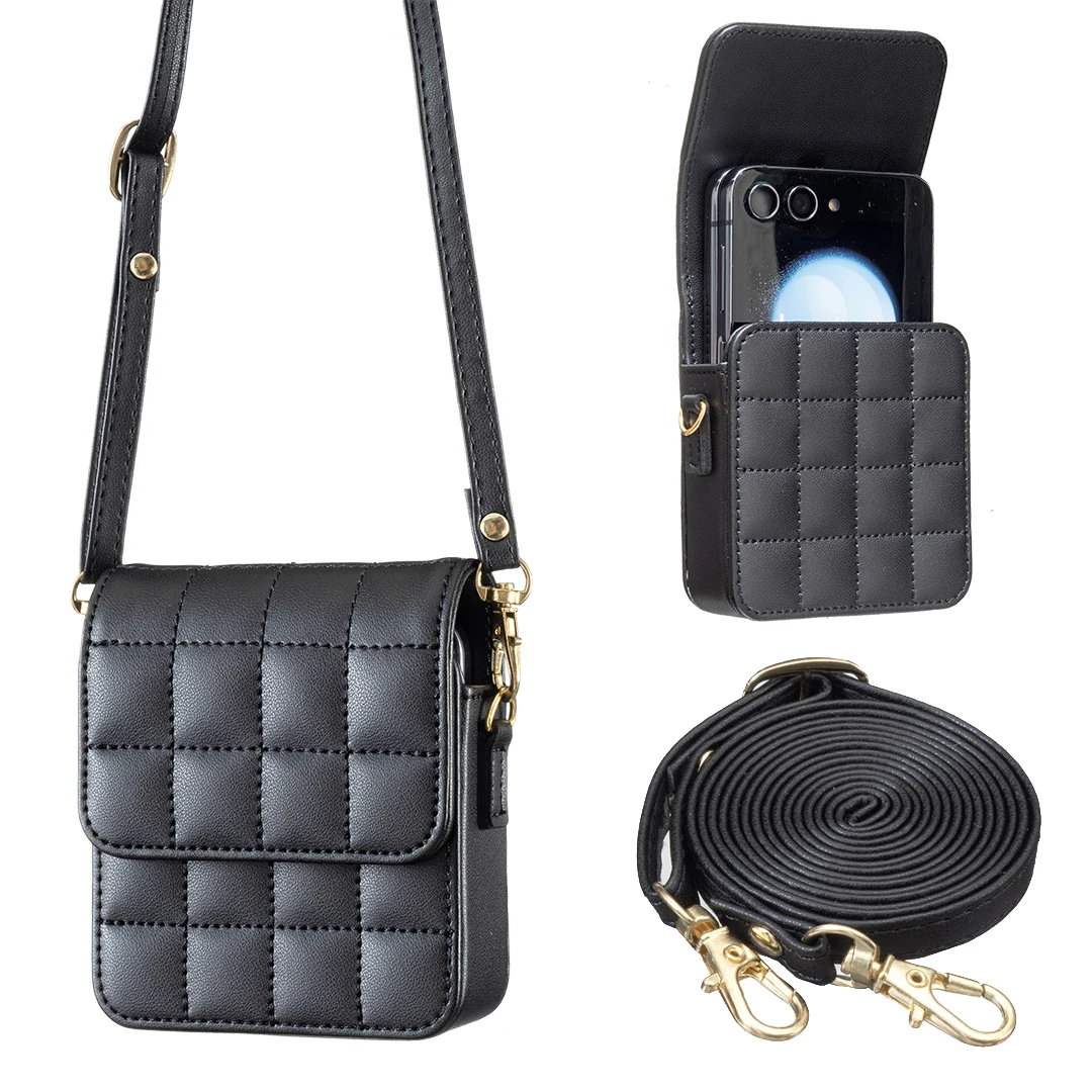 Karierte Kunstleder Hülle/Case zum Umhängen (Inkl. Gurt) für Samsung Galaxy Z Flip 7 FE, 7, 6, 5, 4, 3